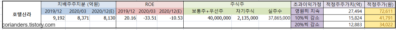 신라호텔은 이번에 코로나19로 인해 ROE가 마이너스로 나와서, 그냥 값을 비교해보고자 2019년 데이터들을 사용했다.