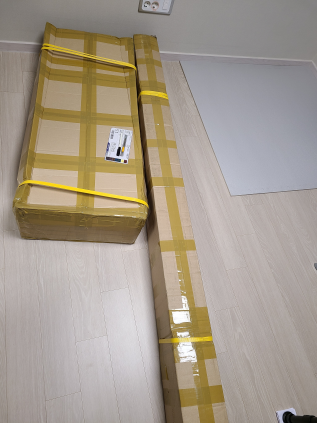 배송은 이렇게 두가지 상자로 오는데 무게가 상당하다. 수직으로 세우는 메인프레임이 든 상자가 매우 기니까 운반에 유의한다.