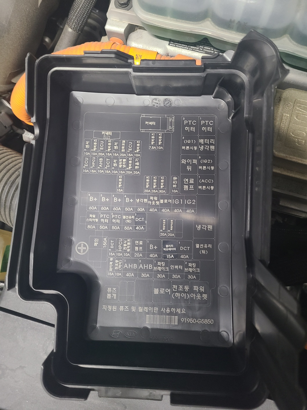 4. 그래서 앞의 보닛을 열어서 보니 배터리가 있어야 할 위치에 배터리는 없고 퓨즈박스만 있었다. '퓨즈박스에 뭔가 있나보다'하고 함을 열어보니 영화에서나 나오던 시폭탄을 열었더니 파란선과 빨간선이 나와서 도대체 뭘 잘라야할 지 모르는 주인공마냥 당황했다. 예상과 너무 다르게 헷갈리게 생겼기 때문이다. 일단 (-)극은 차체 다른 곳에 물리면 되니까 필요 없고 매뉴얼과 뚜껑을 보니 +극의 위치를 대충 알겠는데 정확히 뭔지 모르겠는 것이다. 혹시나 고생하고 있을 다른 분들을 위해서 아래에 사진을 몇개 넣었다.