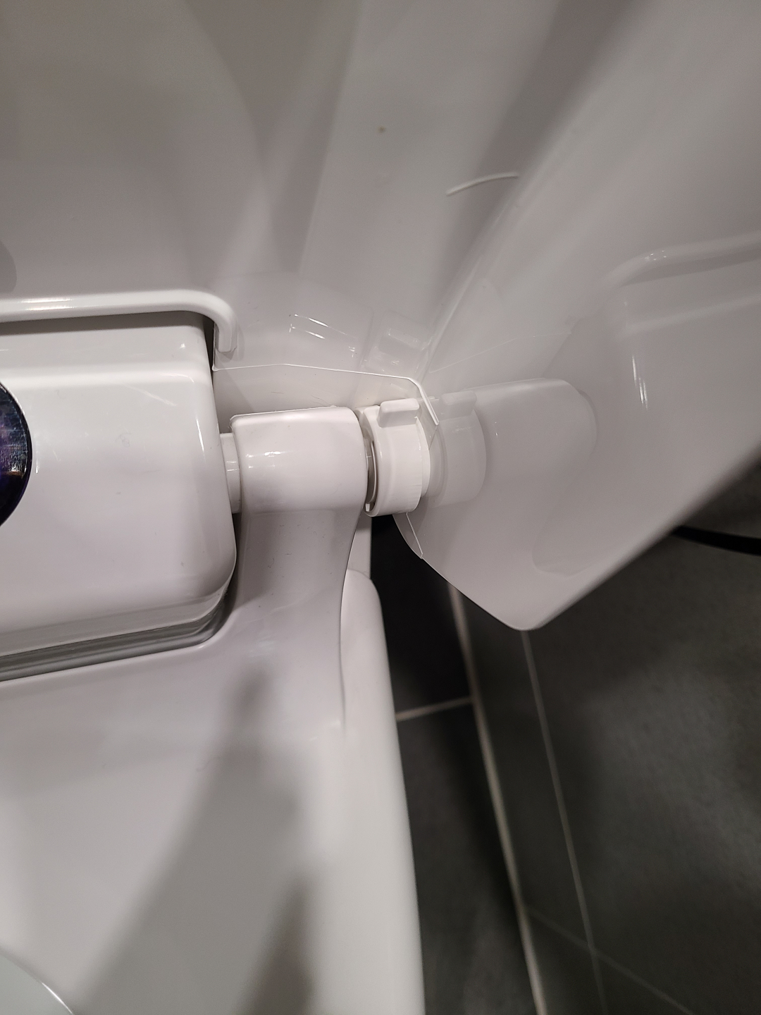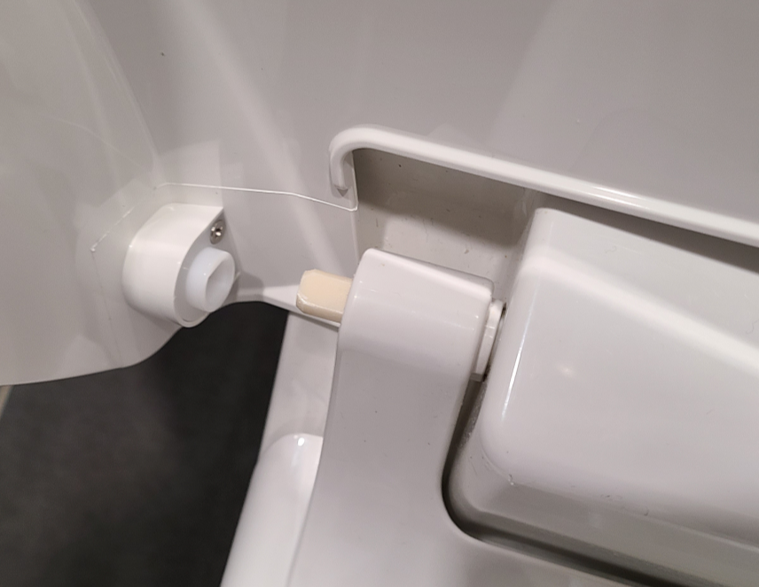 뭔가 이상하다는 걸 깨닫고나서 이리저리 살펴보니 확실히 뚜껑이 빠르게 내려가는 느낌이었고 설명서를 찾아서 보기는 귀찮아서 일단 비데를 여기저기 만져보며 뚜껑의 구조를 살펴봤다. 이전에 변기부품이 망가져서 한번 완전히 뜯어본 경험이 있는터라 어렵지는 않게 문제점을 찾았다.